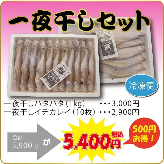 「一夜干しエテカレイ(但馬産)」と「一夜干しハタハタ(但馬産)」をセットでお買い得。