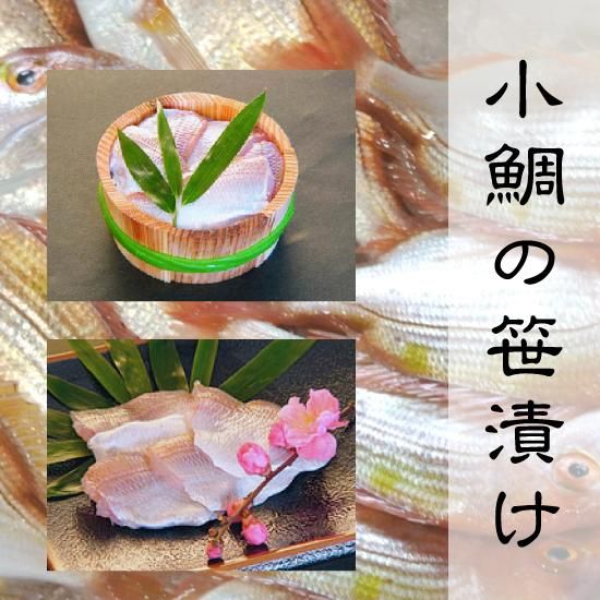 水揚げされたばかりの小鯛を新鮮さそのままに、すべて手作業にて昔ながらの伝統ある製法で仕上げています。塩は赤穂の塩、笹は山野で手積みした新芽を使用しており、香りのよい杉樽が水分を適度に保ちます。