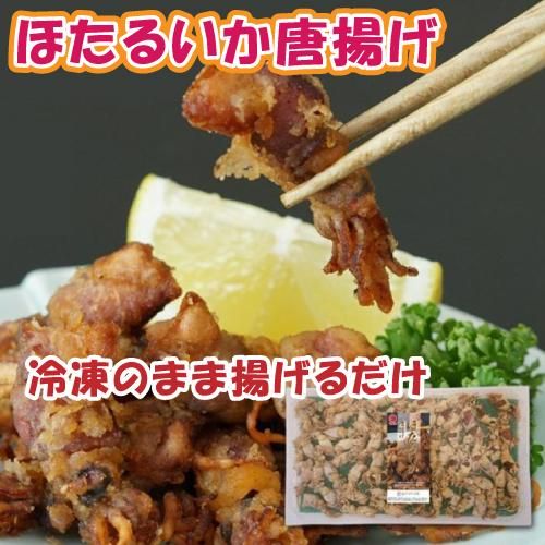 漁獲量日本一・山陰沖産の獲れたてのほたるいかを使用した唐揚げです。冷凍のまま180℃で約2分揚げるだけの簡単調理!お店の味がご家庭で簡単に味わっていただけます。