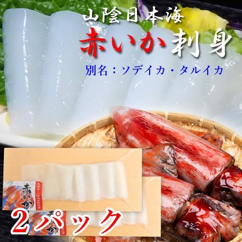 「赤いか」は山陰での呼び名で、他の地域では「ソデイカ」・「タルイカ」などと呼ばれます。皮は赤いですが、写真のように中の身は白く透明感があります。赤いか(ソデイカ)はモッチリとした食感が特徴で冷凍することにより、さらにモッチリ感が増し美味しくなります。見た目の透明感がより一層食欲をそそります。