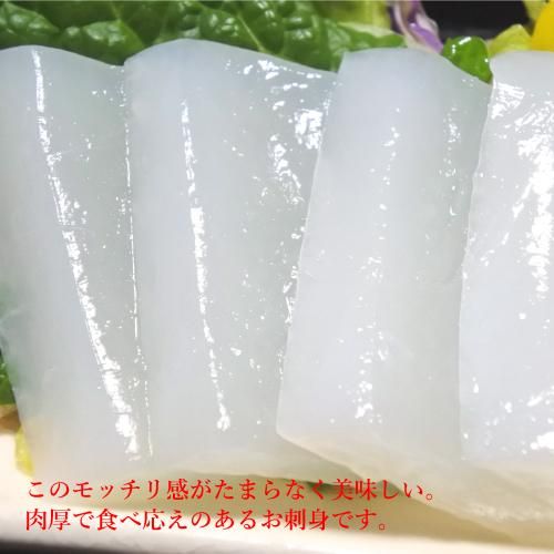 スライスしてますので、解凍後そのままお刺身でお召し上がりください。見た目からも伝わってくるこのモッチリ感がたまらなく美味しい。肉厚で食べ応えのあるお刺身です。