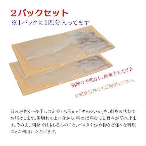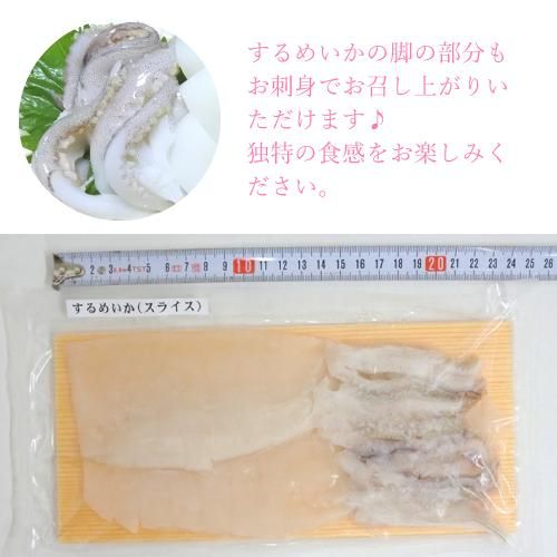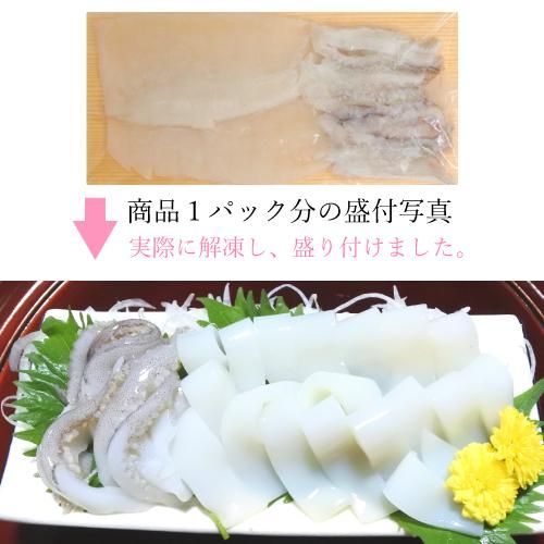山陰沖産の新鮮なスルメイカです。旨みが強く一夜干しの定番とも言える「するめいか」を、刺身の状態でお届けします。歯切れのよい身から、噛めば噛むほど旨みが溢れ出ます。そのまま刺身ではもちろんのこと、パスタや炒め物など様々な料理にもご利用いただけます。